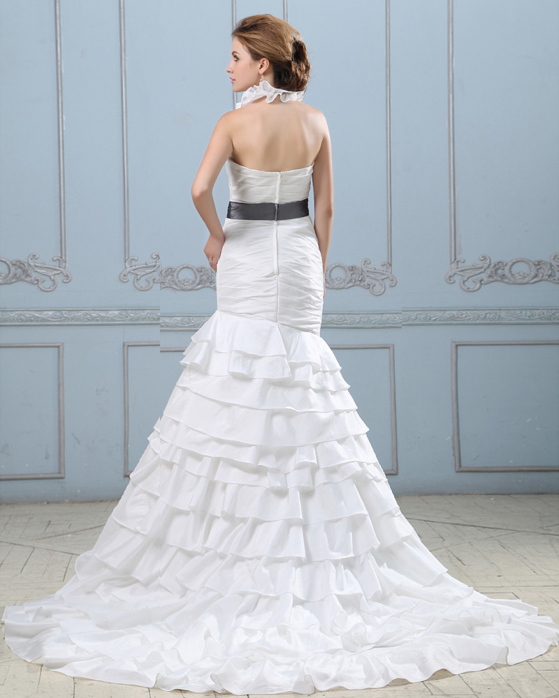 Couleur Blanc - Halter soutien-gorge mariage, Halter Trailing robe de mariée, Halter Qi Ground robe de mariée, Halter épaisse et désordonnée robe de mariée,Robes de mariée à collier